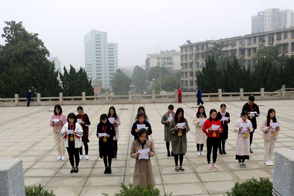 随后全体支部党员来到纪念馆前的广场,集体朗诵《少年中国说》,“天地苍苍,乾坤茫茫,中国少年,顶天立地当自强。少年中国者,则中国少年之责任也。故今日之责任,不在他人,而全在我少年。”每位党员深情的朗诵,激情澎拜。最后支部书记廖九英带领全体党员面对刻有所有烈士名字的的湘潭烈士纪念石碑,支部副书记王家丽和支委肖佳妮高举党旗,大家一起重温入党誓词,他们喊出了对党的忠诚和热爱,宣誓的声音在碑前回响许久。