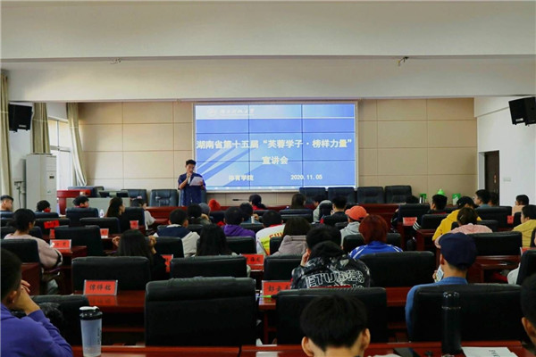 11月5日12:30,体育学院第十五届“芙蓉学子·榜样力量”宣讲会在体育楼223教室举行。参加此次会议的有体育学院主要学生干部、数学学院三位优秀“芙蓉学子”,以及beat36517级电子信息工程一班张健作为“学术科研”奖项的代表受邀来此进行宣讲。