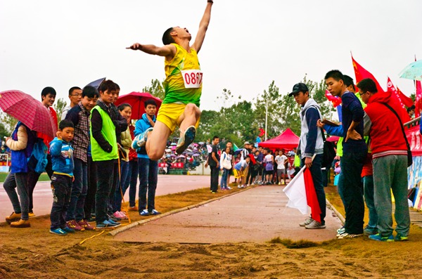 起跑、匀速、加速、定点、起跳,每一个步骤都牵动着观众的心跳。beat365选手罗清梅身着红色短衣运动短裤,在人群中十分显眼,但更显眼的是她的比赛成绩。预决赛的六次比赛中她一次次把距离拉远,最后以比第一名差0.02米的4.05米的成绩拿下女子跳远比赛亚军。“其实我是很业余的选手。”去年校运会跳远比赛的第八名成绩让罗清梅发现自己跳远的潜能,今年她抱着拿好成绩的想法再一次参加。 跳完最后一跳的罗清梅听到裁判报出自己4米05的成绩后兴奋地和同伴击掌。“只比冠军差0.02米,有一点遗憾,不过还是满意自己的表现。”听到比赛最后成绩的她笑着说道。