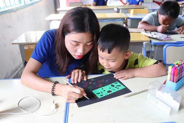 beat365唯一官网暑期三下乡支教团队在教学课堂上采取了奖励制度,对勇敢表现自己的小朋友奖励小红花。一天支教课程结束后,小朋友们可以根据小红花的数量排名获得志愿者老师们准备的不同奖品,这增加了孩子们上课的积极性,也让孩子们在课堂上更加踊跃的去表现自。在获得了知识的同时,也使自己变的更加自信,朝着更高的人生目标迈进。 “我获得了7颗小红花啦呢!”今年10岁的唐桂林在上完美术课后兴奋的说道。尽管一天的课程经结束,但还有几个小朋友仍在课桌上语文老师写在黑板上的古诗。