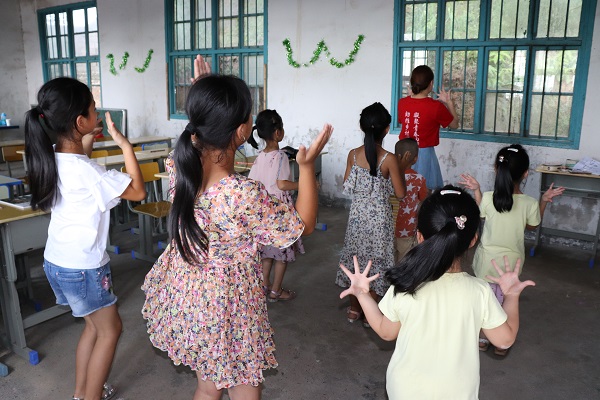 "一个一个梦飞出了天窗,一次一次想穿梭旧时光……"正是本次三下乡团队成员江建梅教小朋友们唱的歌曲,教室里面不时地传出孩子们的欢声笑语。虽然怀化市的七月骄阳似火,但孩子们纯真眼睛中浓厚的求知欲所有志愿者们都为之动容,暂时忘记了天气的炎热。"由于条件有限,教室里没有风扇,所有孩子和老师汗流浃背,但是所有人都在坚持,他们对知识的渴望完全超出了我们的想象这些孩子们稚嫩的童声和热情洋溢的笑容让我们觉得这一切都是值得的"此次三下乡团队成员王俣晴说道。